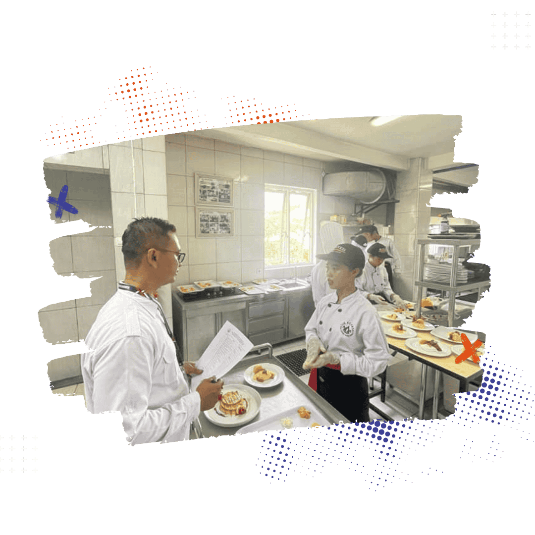 Pelatihan untuk mencetak profesional dapur yang mampu memimpin satu bagian produksi makanan. Peserta akan belajar teknik memasak tingkat lanjut, manajemen dapur, dan kontrol kualitas hidangan sesuai standar industri perhotelan dan restoran.