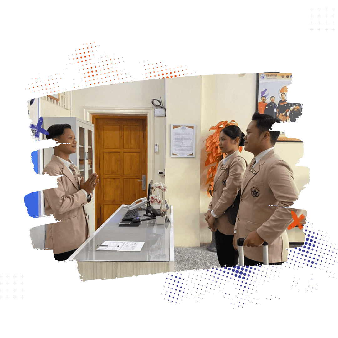 Pelatihan untuk mencetak tenaga profesional di bidang penerimaan tamu hotel. Peserta akan mempelajari prosedur check-in dan check-out, pelayanan reservasi, komunikasi tamu, penggunaan sistem front office, hingga etika dan penampilan profesional sesuai standar industri perhotelan.
